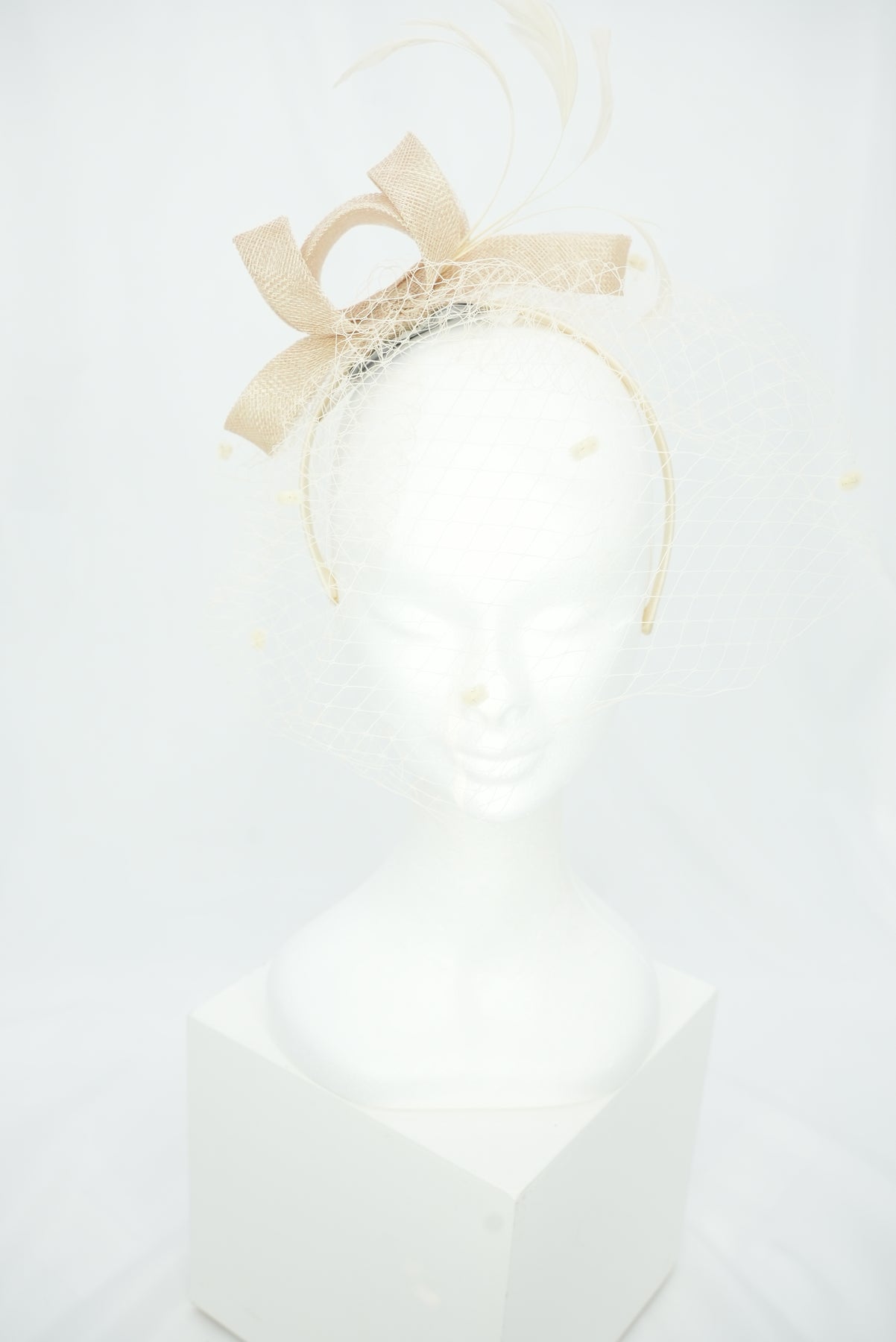 Ein Fascinator auf einem Haarreif mit Schleife, Feder und einem Schleiernetz ist ein elegantes und stilvolles Accessoire, das jedem Outfit einen Hauch von Raffinesse verleiht. Die zarte Schleife und die filigranen Federn sorgen für einen verspielten und zugleich edlen Look, während das Schleiernetz vor dem Gesicht für einen geheimnisvollen und glamourösen Akzent sorgt. Der Haarreif ermöglicht eine bequeme und sichere Befestigung, sodass der Fascinator perfekt sitzt und den ganzen Tag über getragen werden kann. Dieses Accessoire ist ideal für besondere Anlässe wie Hochzeiten, Bälle oder festliche Veranstaltungen, bei denen ein Hauch von Vintage-Chic und Eleganz gefragt ist. Mit seinem harmonischen Zusammenspiel aus Schleife, Feder und Schleiernetz ist dieser Fascinator ein echter Blickfang, der jedem Outfit das gewisse Etwas verleiht.