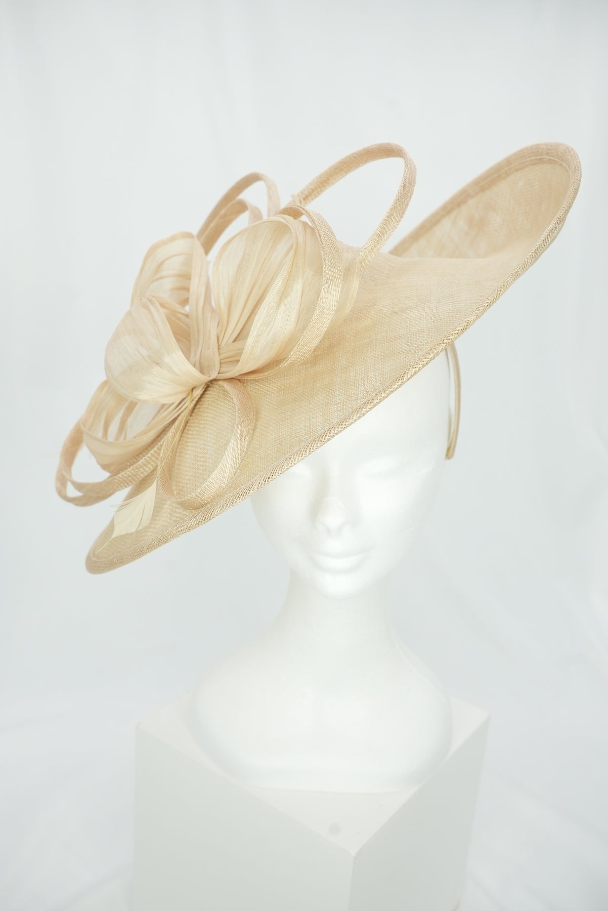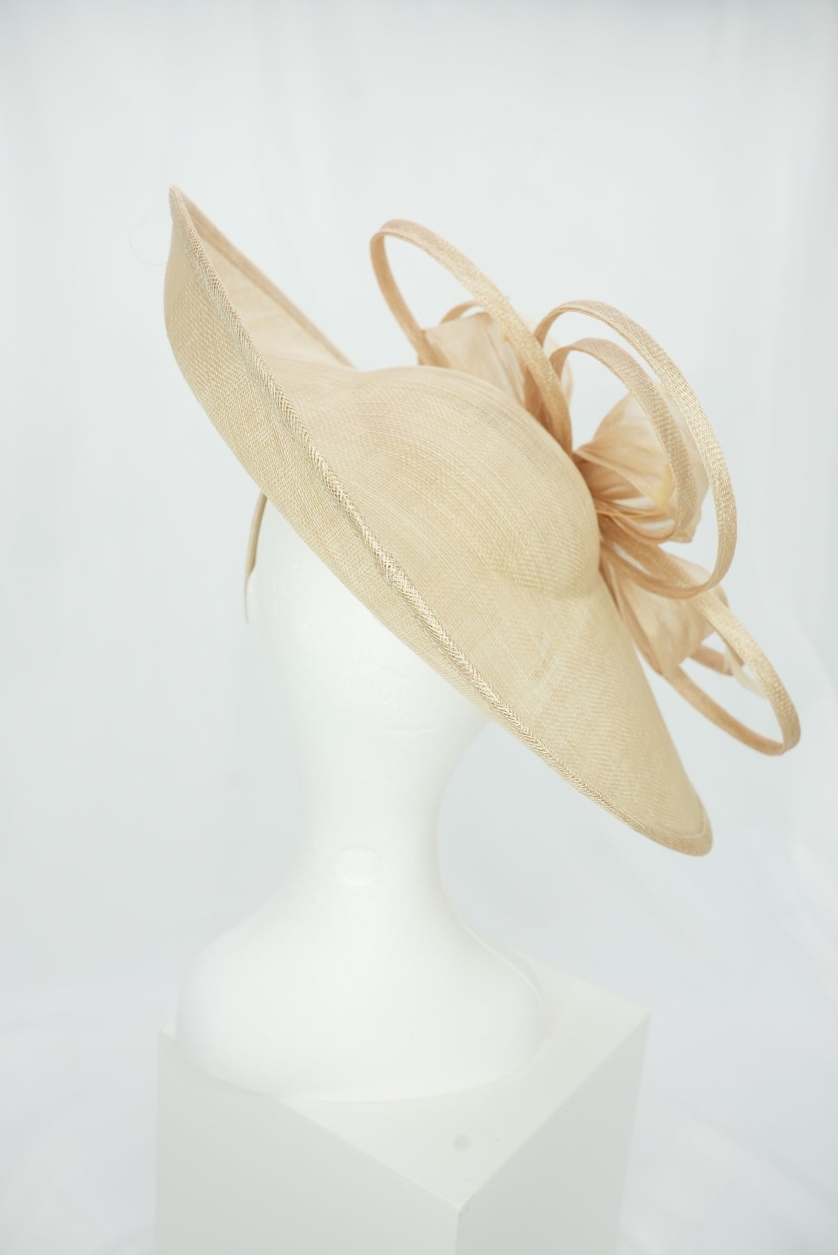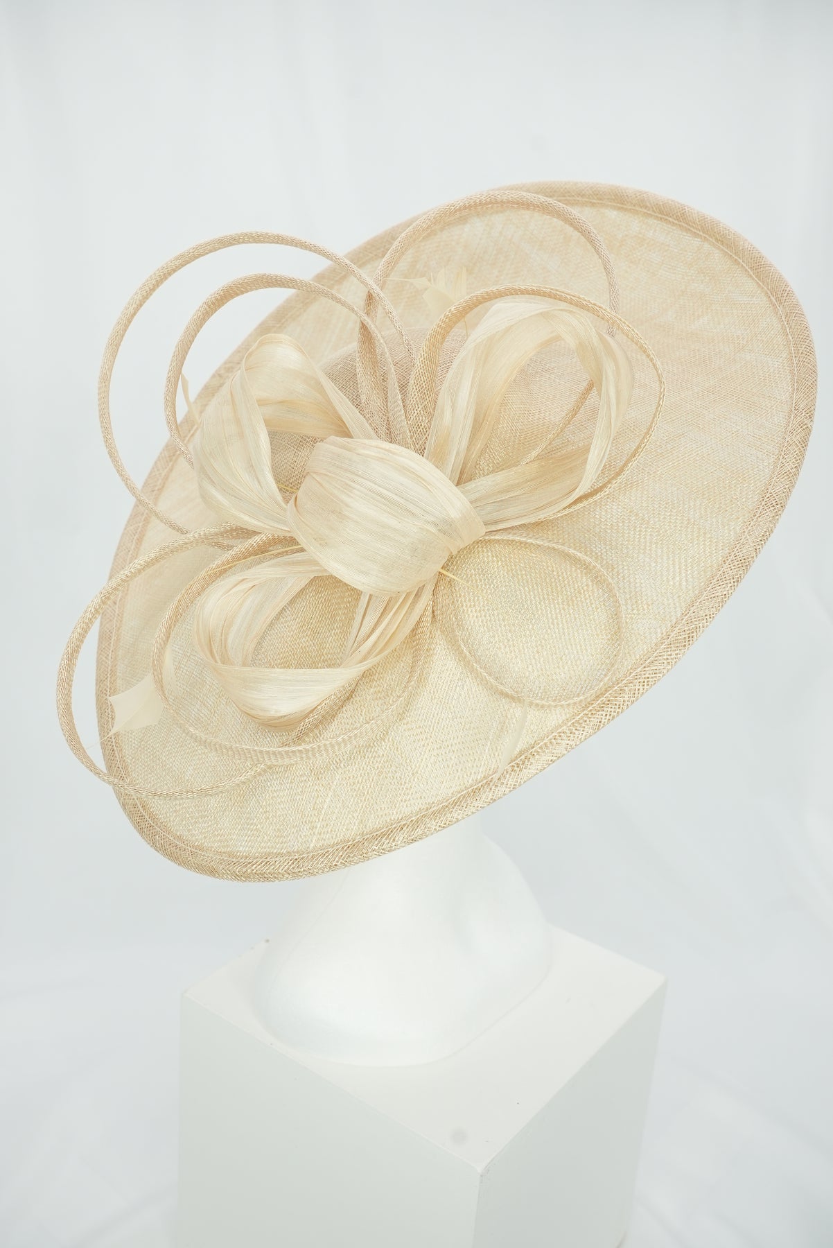 Dieser runde Tellerfascinator aus feinem Sinemay überzeugt mit seinem klaren Scheiben-Design und einer modernen, eleganten Ausstrahlung. Die Verzierung aus geschwungenen Schlaufen verleiht dem Modell Leichtigkeit und eine raffinierte Dynamik, während sie das reduzierte Design stilvoll ergänzt. Das luftige Material unterstreicht die edle Struktur des Fascinators und sorgt für ein harmonisches Gesamtbild. Ein elegantes Accessoire, das festliche Outfits geschmackvoll abrundet und zeitlose Eleganz ausstrahlt.