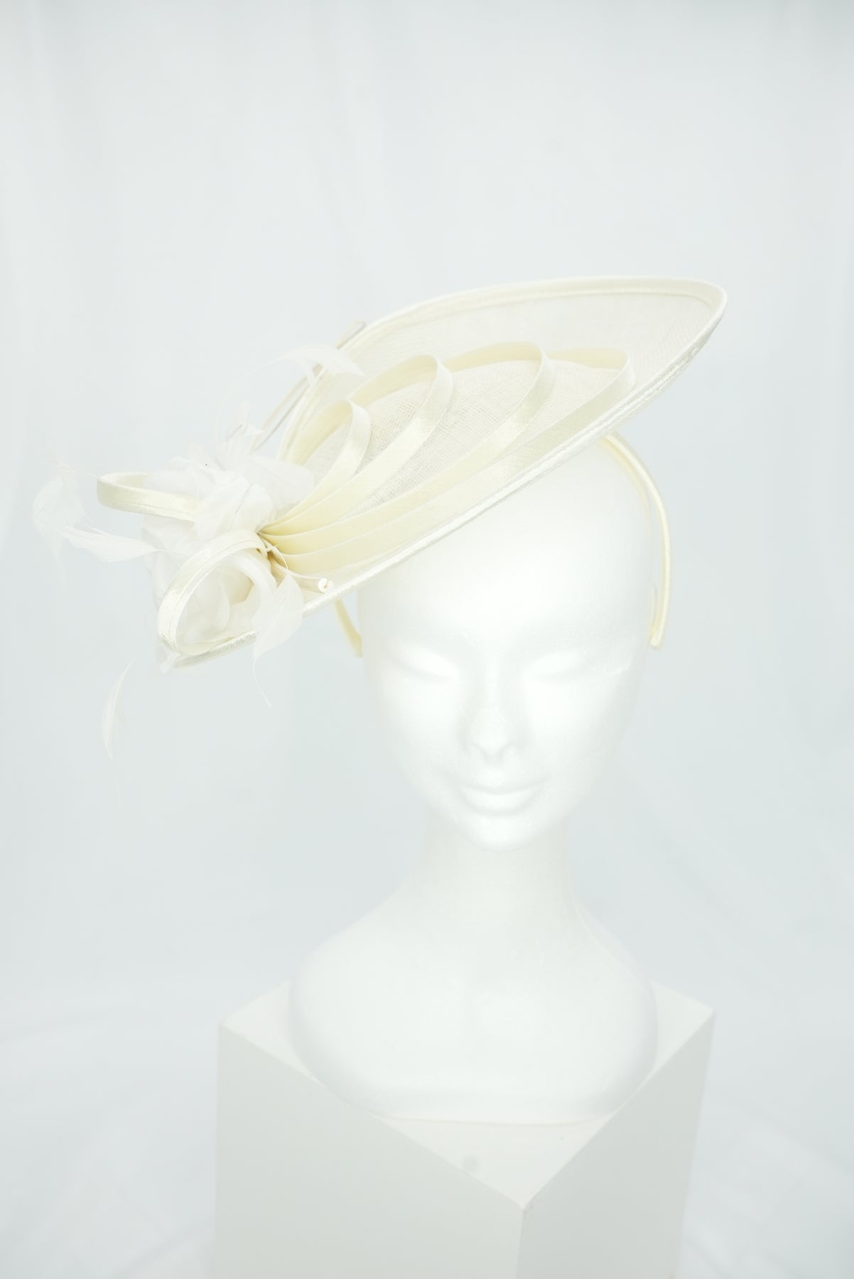 Dieser elegante Tellerfascinator aus feinem Sinamay präsentiert sich in klassisch runder Form und überzeugt durch seine leichte, edle Ausstrahlung. Geschwungene Elemente, ebenfalls aus Sinamay gefertigt, verleihen dem Design Bewegung und eine harmonische Dynamik. An der Seite setzt eine kunstvoll gearbeitete Blume als It-Piece einen ausdrucksstarken Akzent und unterstreicht die feminine Eleganz des Fascinators. Ein stilvolles Accessoire, das festliche Looks perfekt ergänzt und bei besonderen Anlässen für einen raffinierten Auftritt sorgt.