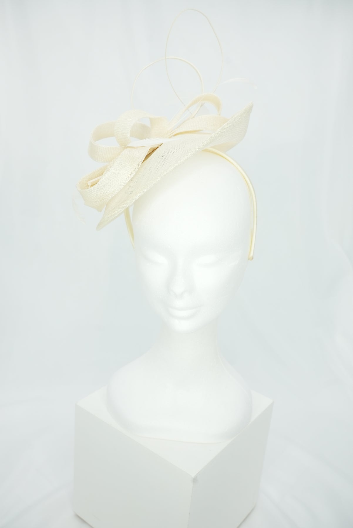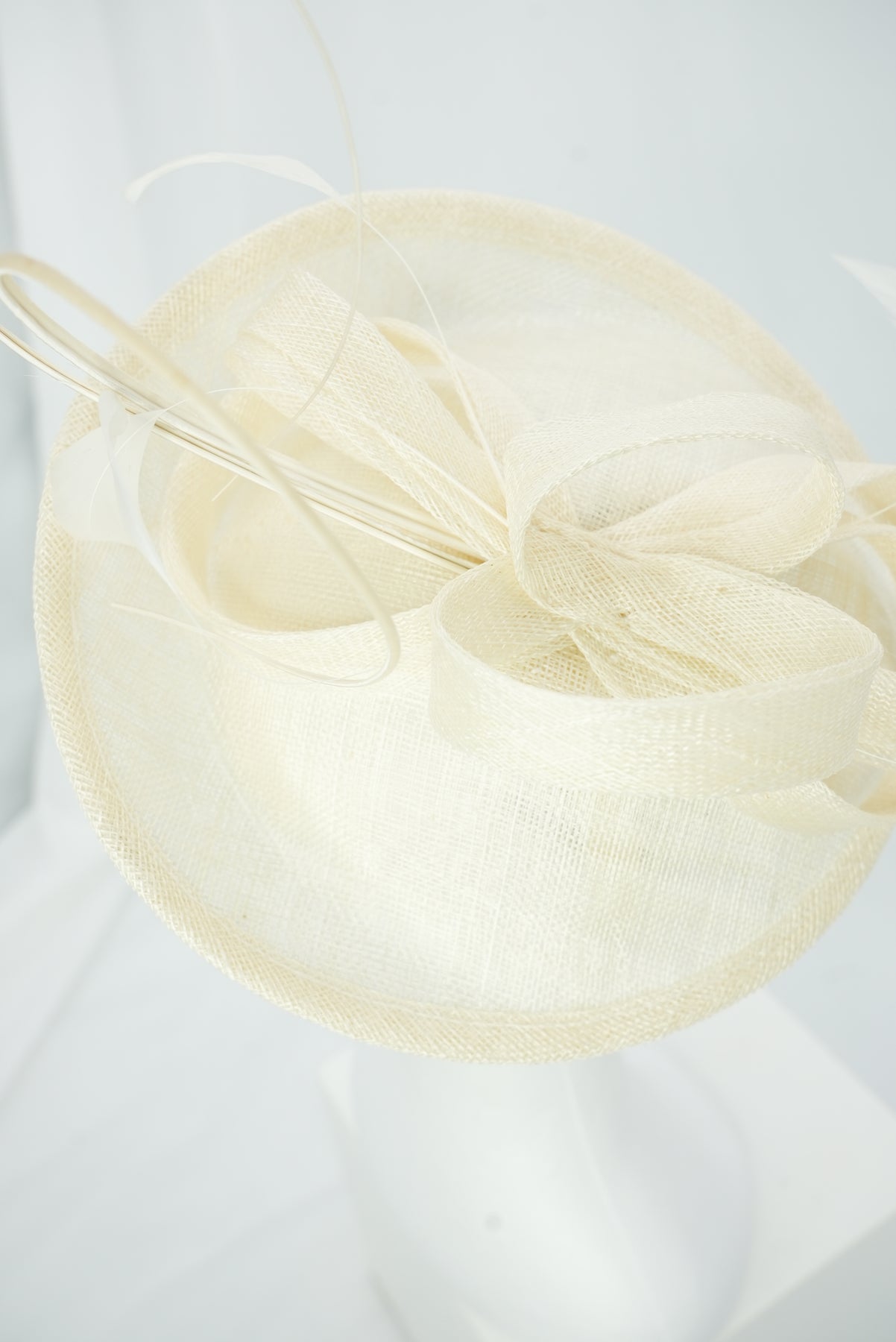 Dieser kleine Tellerfascinator auf einem Haarreifen besticht durch seine feine, elegante Ausstrahlung. Gefertigt aus hochwertigem Sinemay wirkt das Design besonders leicht und edel. Die ebenfalls aus Sinemay gearbeitete Schleife fügt sich harmonisch in das Gesamtbild ein und setzt einen stilvollen, femininen Akzent. Durch seine kompakte Form bleibt der Fascinator dezent und dennoch wirkungsvoll – ein elegantes Accessoire, das festliche Outfits geschmackvoll abrundet und besonderen Anlässen eine stilvolle Note verleiht.