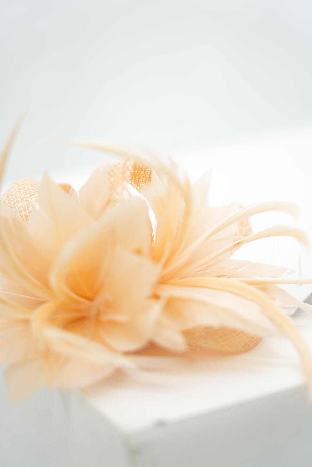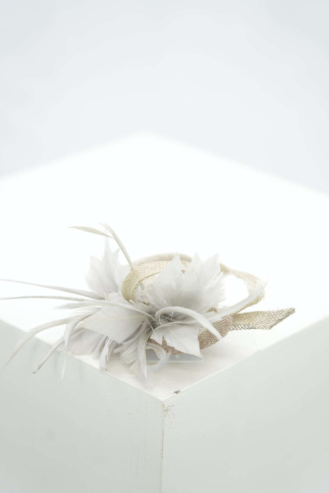 Fascinator "Sinemay" mit Blumenschleife altrosa