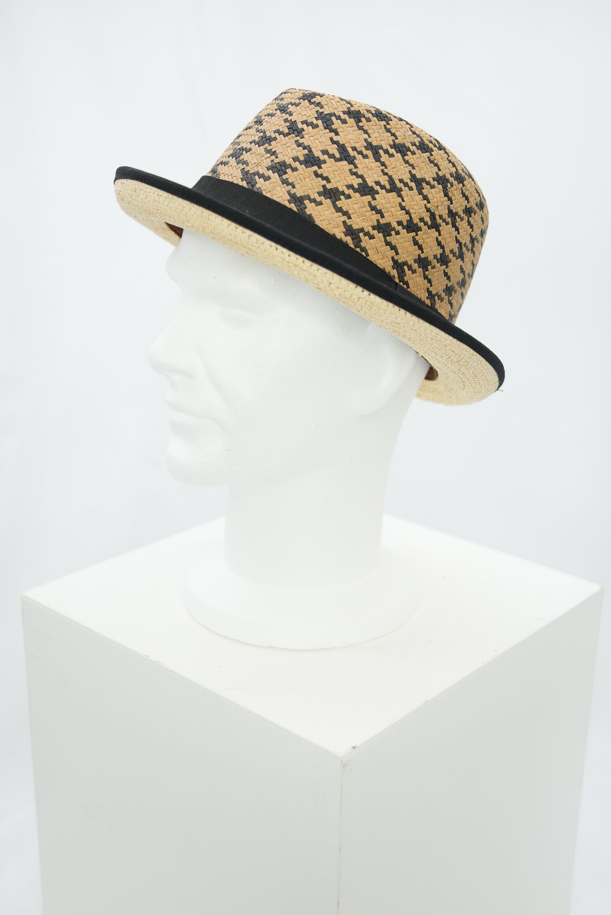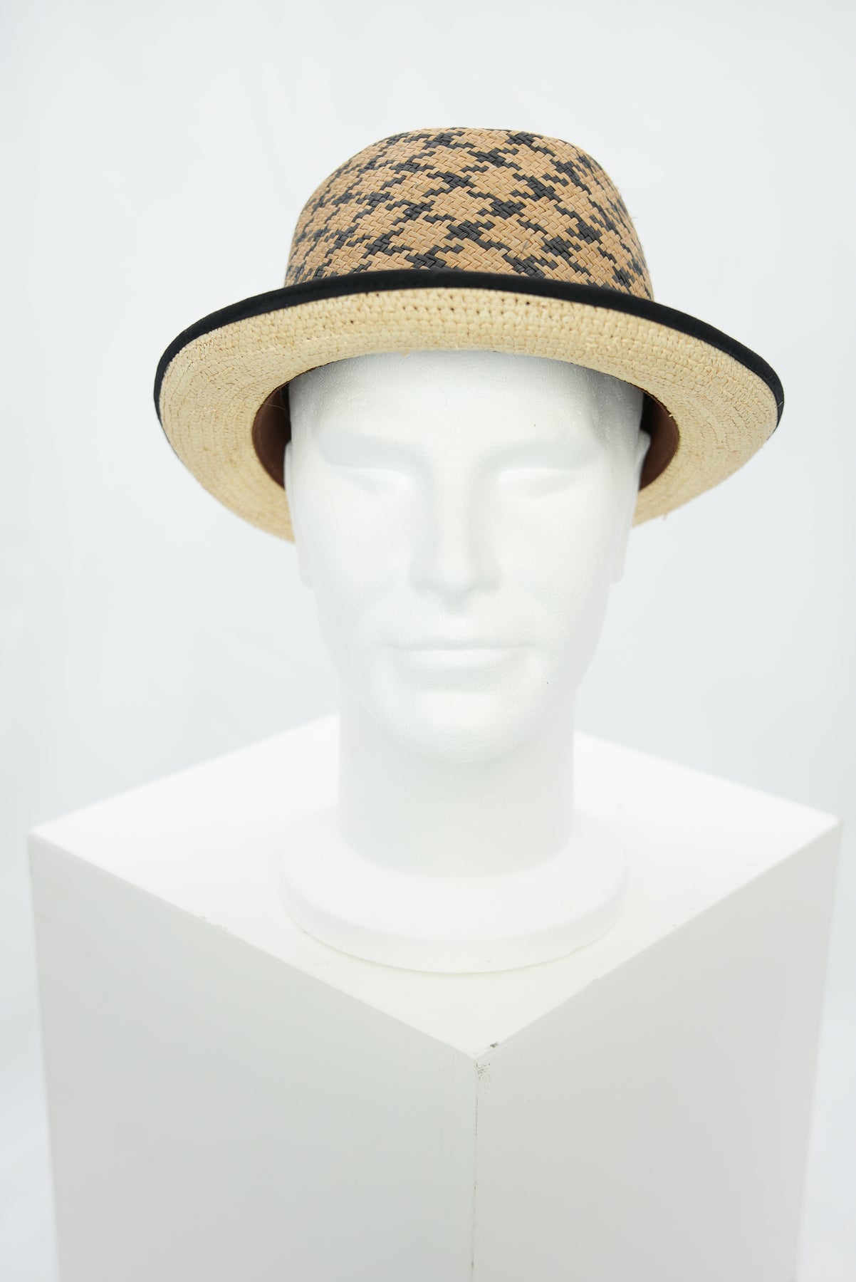 Das harmonische Farbspiel aus Naturstroh und Braun verleiht dem Hut Tiefe und Charakter – dezent, aber ausdrucksstark. Abgerundet wird das Design durch ein klassisch schwarzes Hutband, das dem Gesamtbild eine elegante Note verleiht.