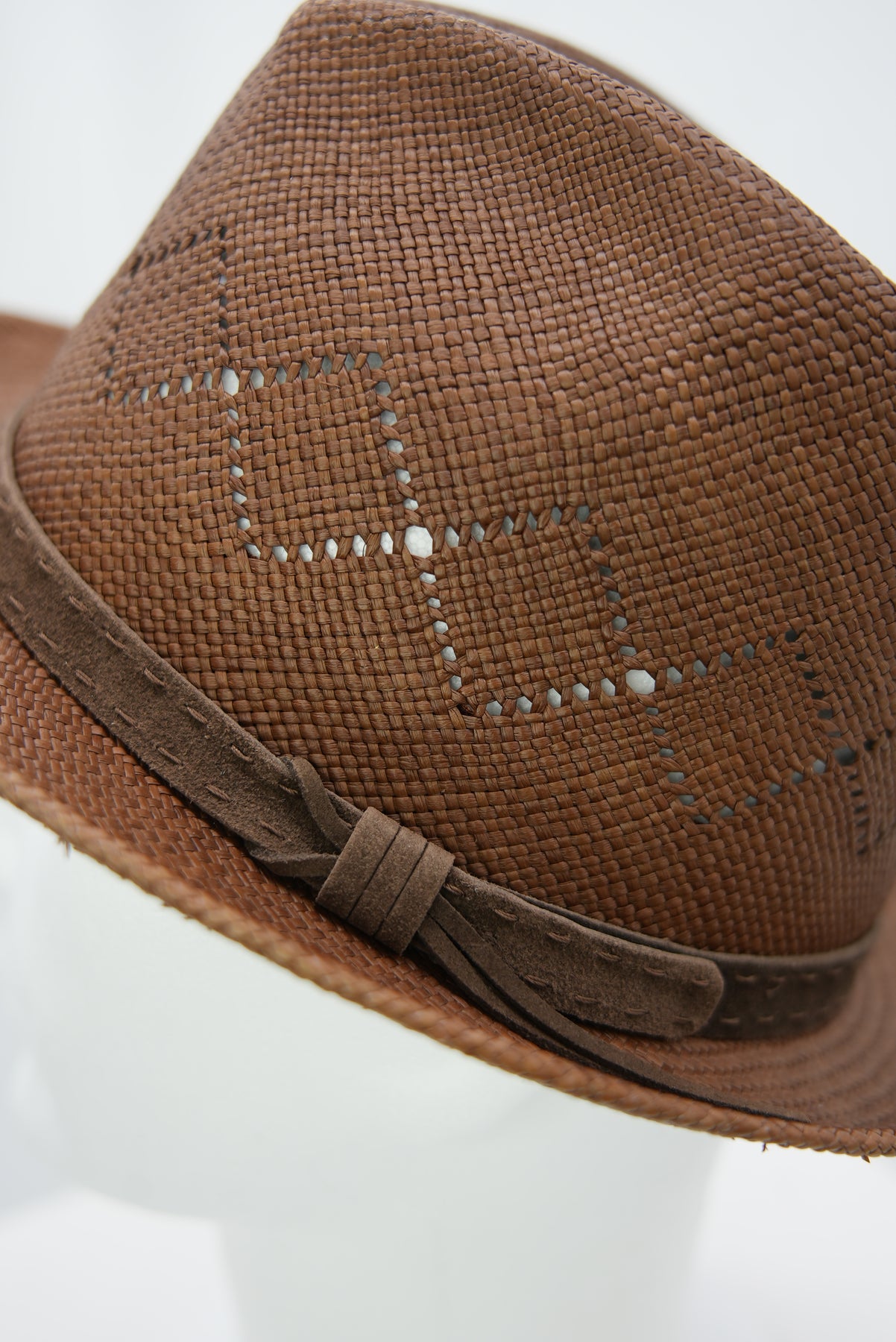 Luftig. Markant. Stilvoll – Brauner Panamahut mit Lochmuster und Lederband