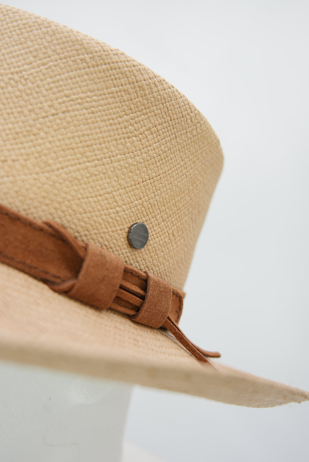 Panamahut mit hellbraunen Lederband