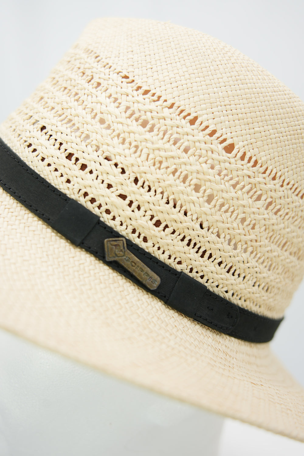 Panamahut mit Lochmuster und schwarzem Lederband