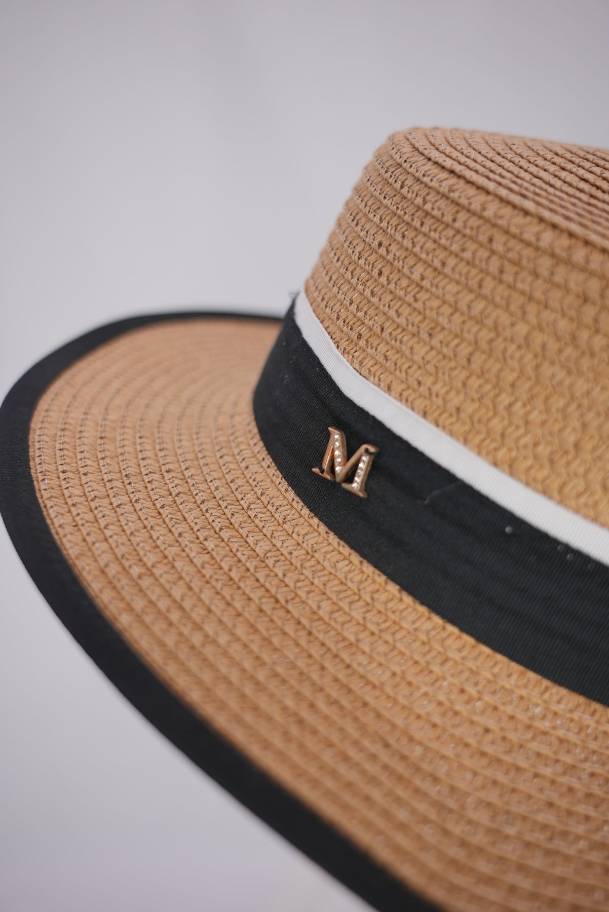 Ein besonderes Highlight ist der seitlich angebrachte Buchstabe „M“. Dieses individuelle Detail verleiht dem Hut eine persönliche Note und macht ihn zu einem stilvollen Blickfang mit Charakter.