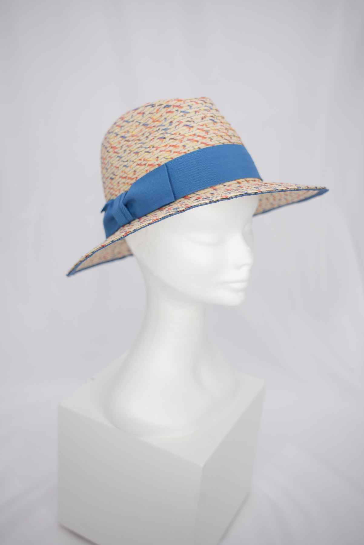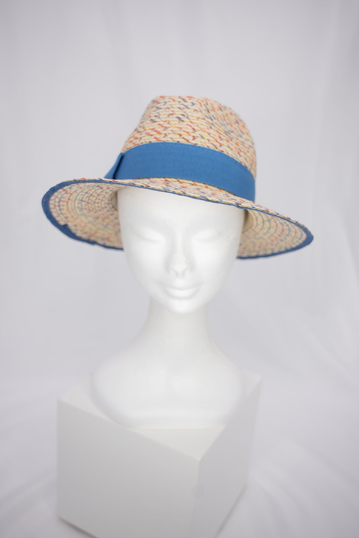 Ein leichter, farbenfroher Hut, der jedem Outfit einen lebendigen Akzent verleiht und perfekt für sonnige Tage geeignet ist.