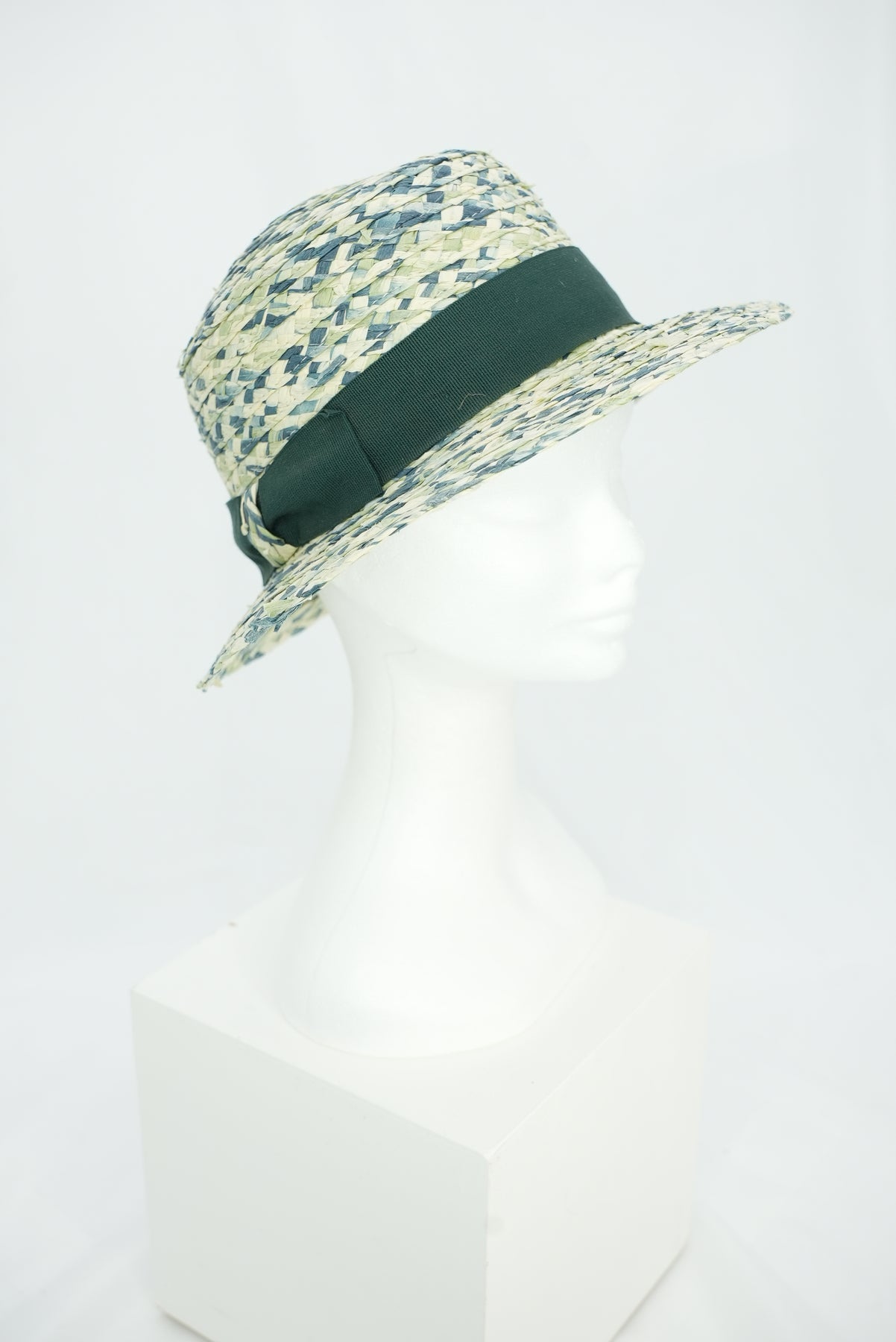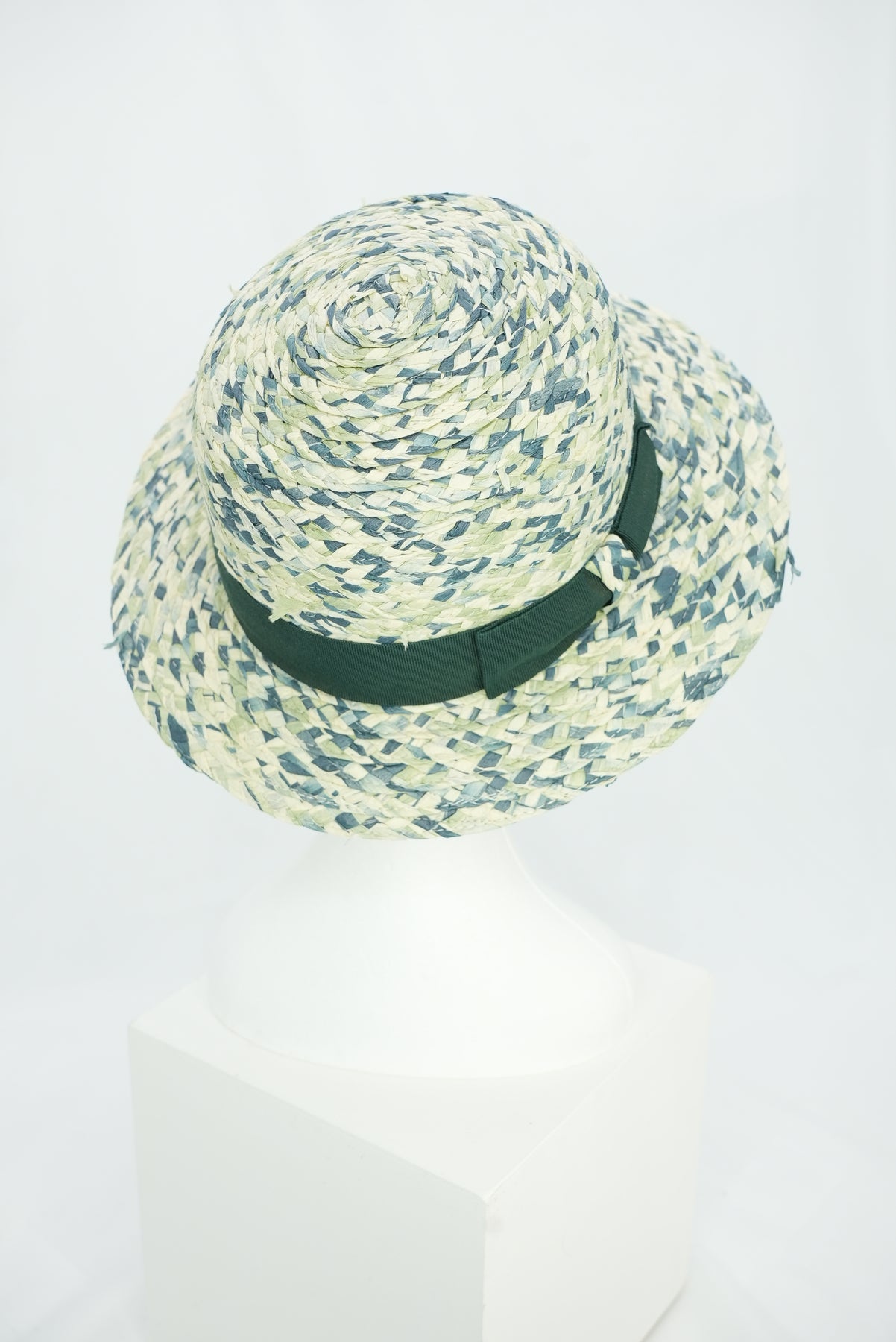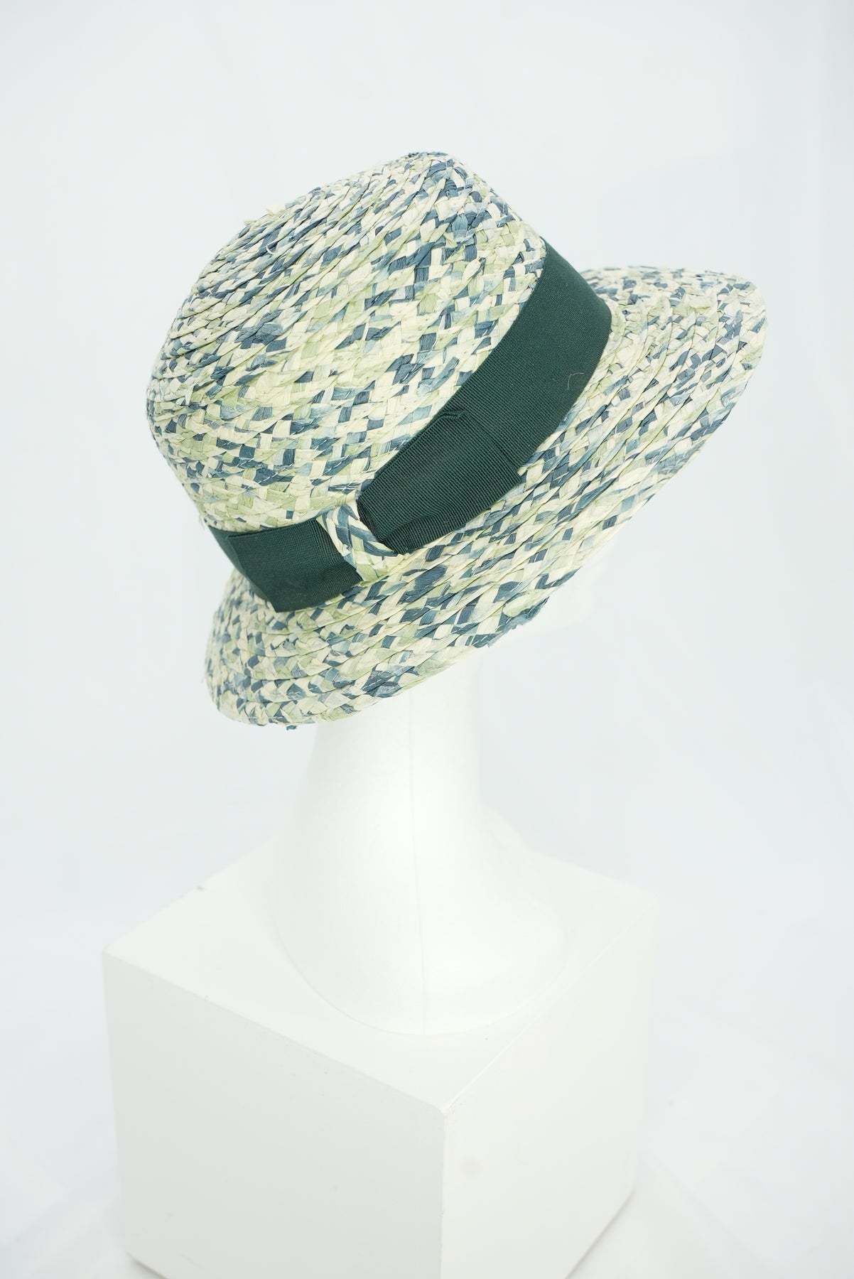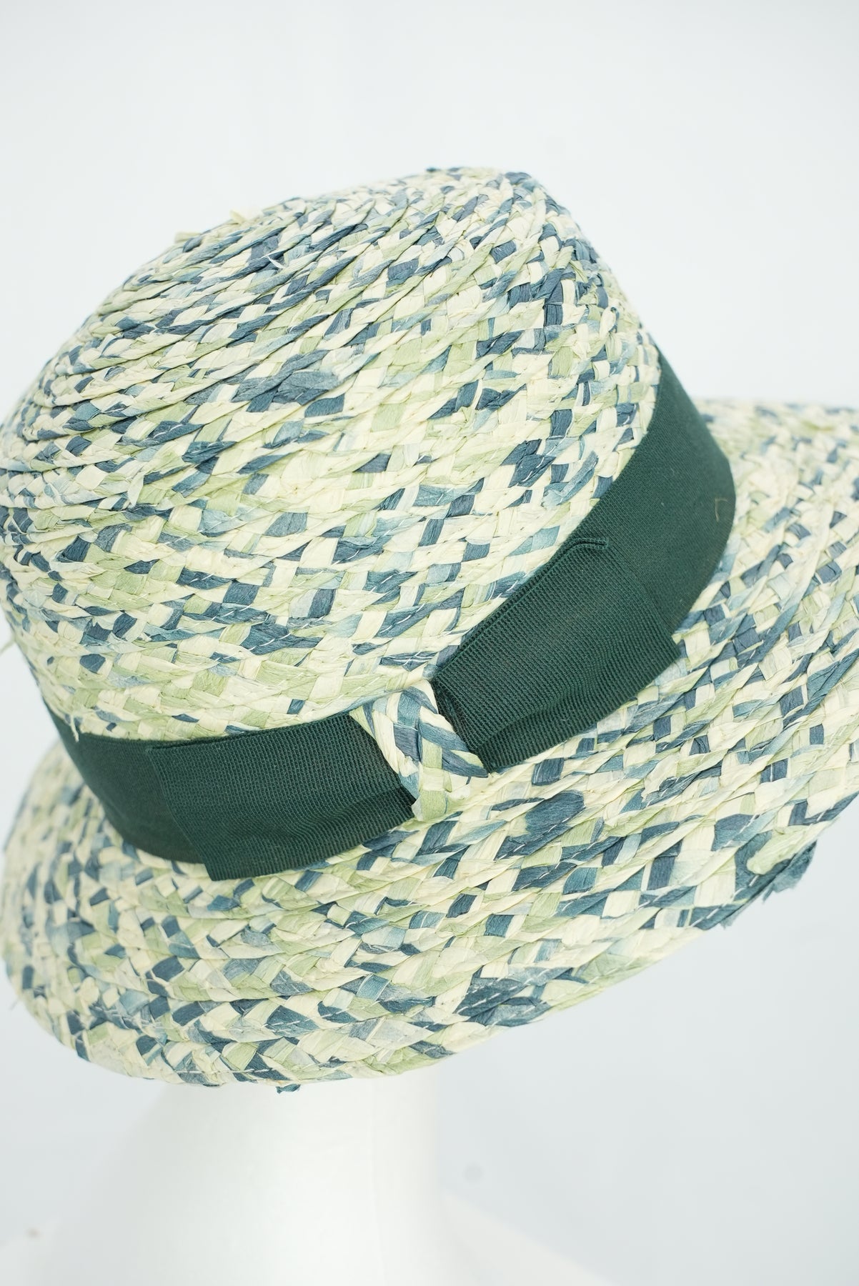 Der sanfte Grünton wirkt harmonisch und modern – ein dezenter Farbakzent, der sich vielseitig kombinieren lässt. Besonders edel wirkt das dunkelgrüne Band, das als elegante Schleife gebunden ist und dem Hut eine feminine, stilvolle Note verleiht. Der dunklere Kontrast unterstreicht die Form und setzt ein geschmackvolles Detail.