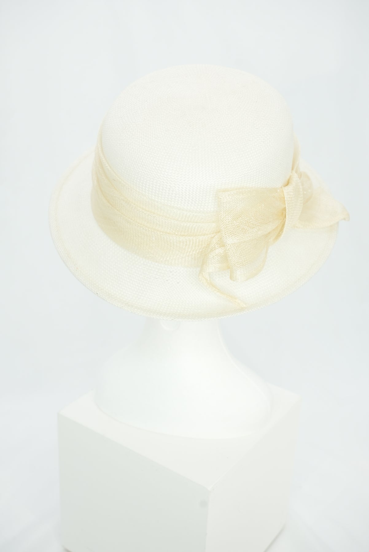 Die beigefarbene Schleife setzt einen sanften Akzent und unterstreicht das harmonische Design, ohne die schlichte Optik zu dominieren. Ein stilvolles Accessoire für sonnige Tage, das sich mühelos kombinieren lässt und jedem Outfit eine feine, elegante Note verleiht.