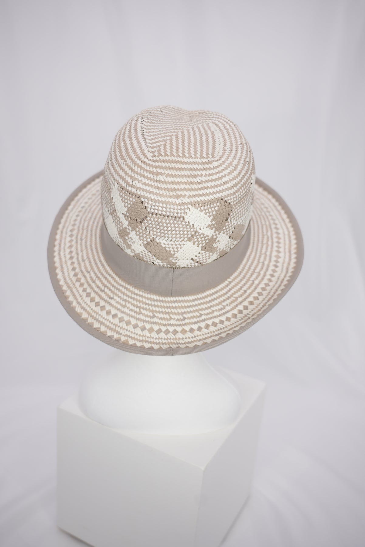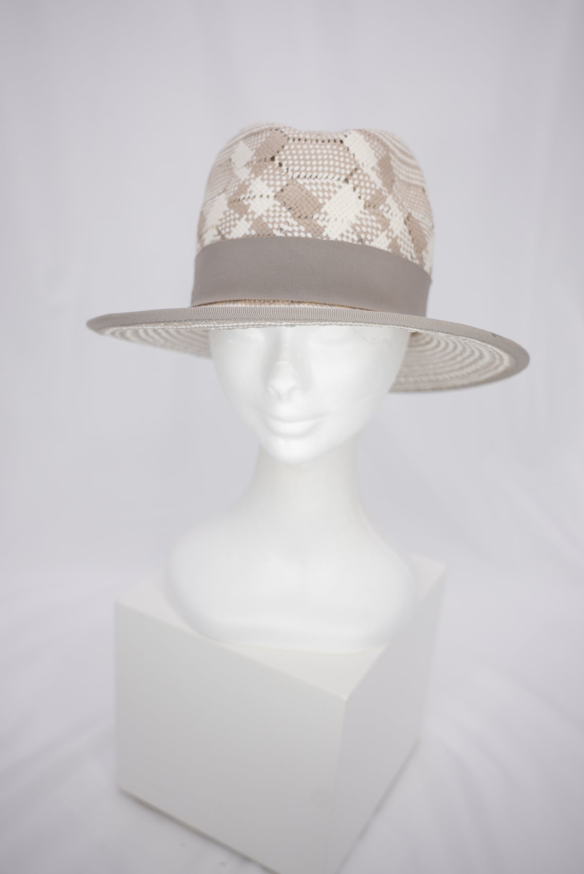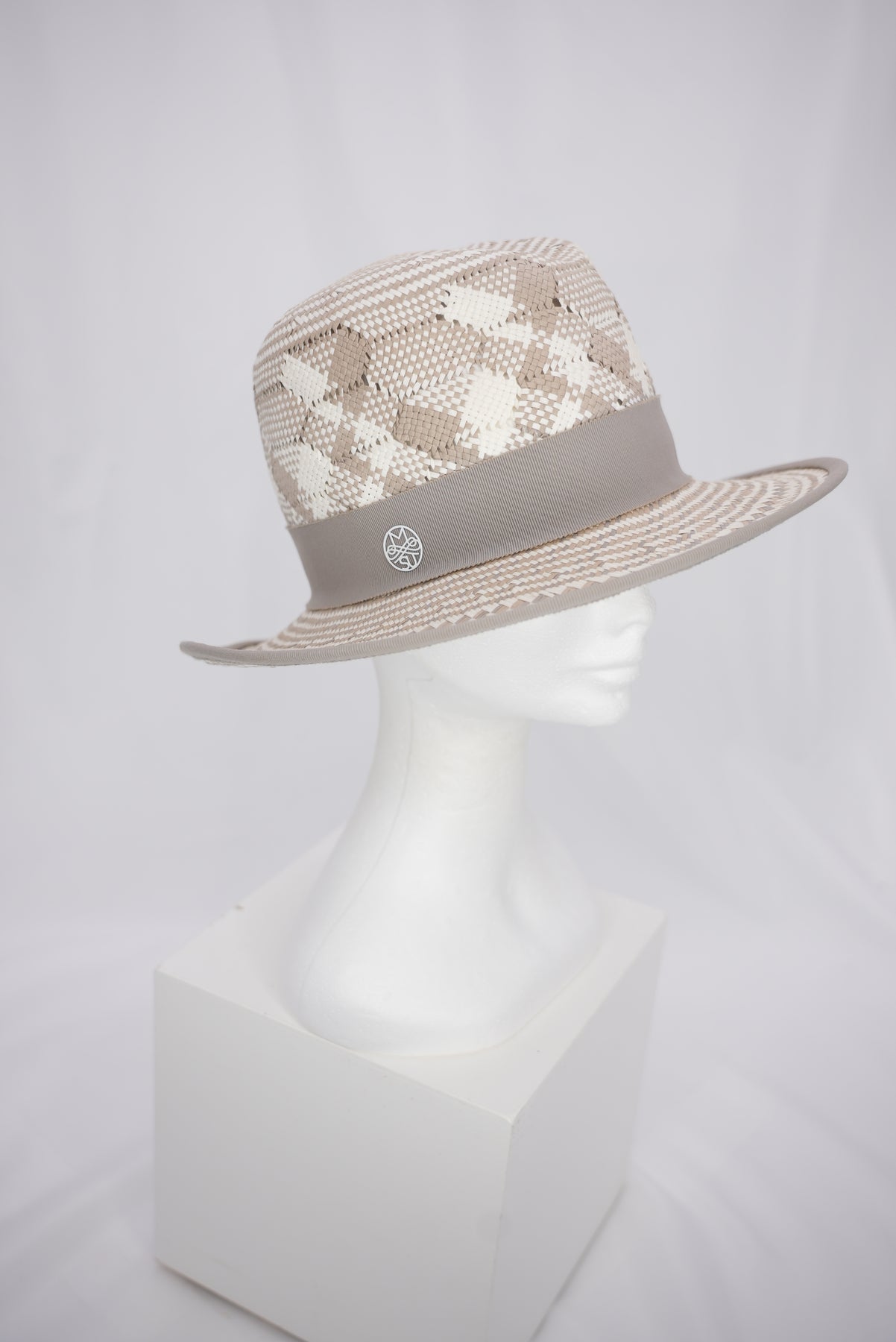 Abgerundet wird das Modell durch ein hellgraues Band, das die Krone umschließt und dem Hut eine klare, elegante Kontur verleiht. Der helle Grauton setzt einen sanften Kontrast und sorgt für eine ausgewogene, zurückhaltende Optik.