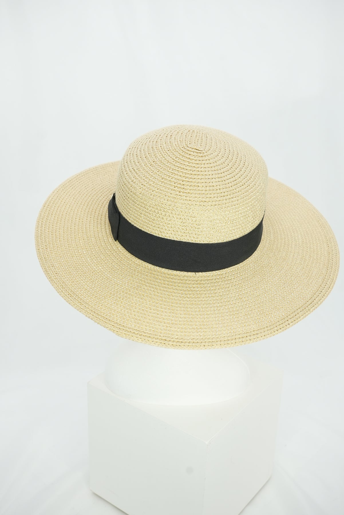 Ein schwarzes Band legt sich schlicht und elegant um die Krone und setzt einen markanten Kontrast zum warmen Naturton des Strohs. Dieses klare Detail unterstreicht das zeitlose Design und verleiht dem Hut eine moderne, edle Note.
