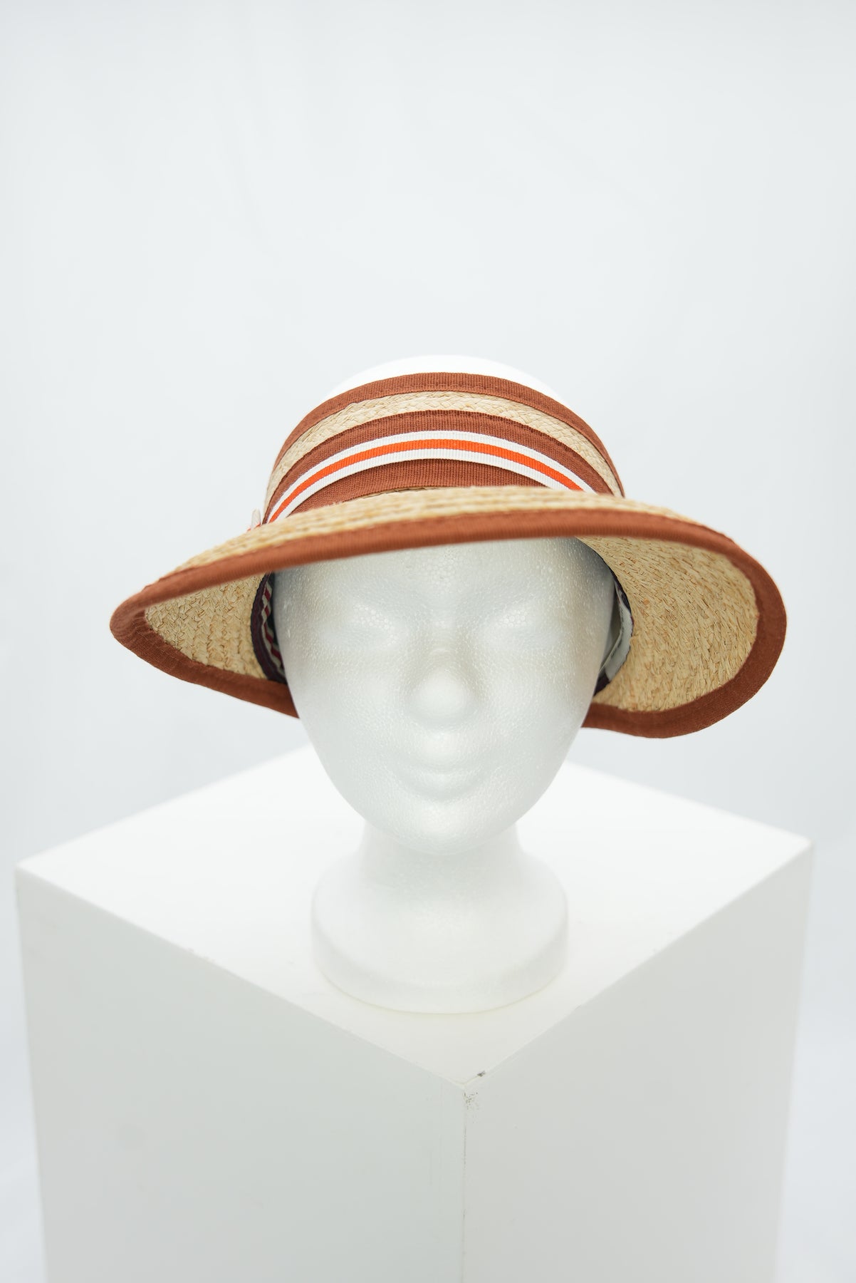 Dieses Strohschild in zwei harmonischen Farben vereint natürliche Materialität mit moderner Klarheit. Die feine Körnung des Strohmaterials wird durch einen kontrastierenden Farbstreifen betont, der dem Schild eine klare Silhouette und eine frische, sommerliche Ausstrahlung verleiht. Die zweifarbige Gestaltung schafft visuelle Tiefe, ohne zu überladen zu wirken, und passt zu vielen Outfits – vom leichten Leinenanzug bis zur entspannten Jeans.