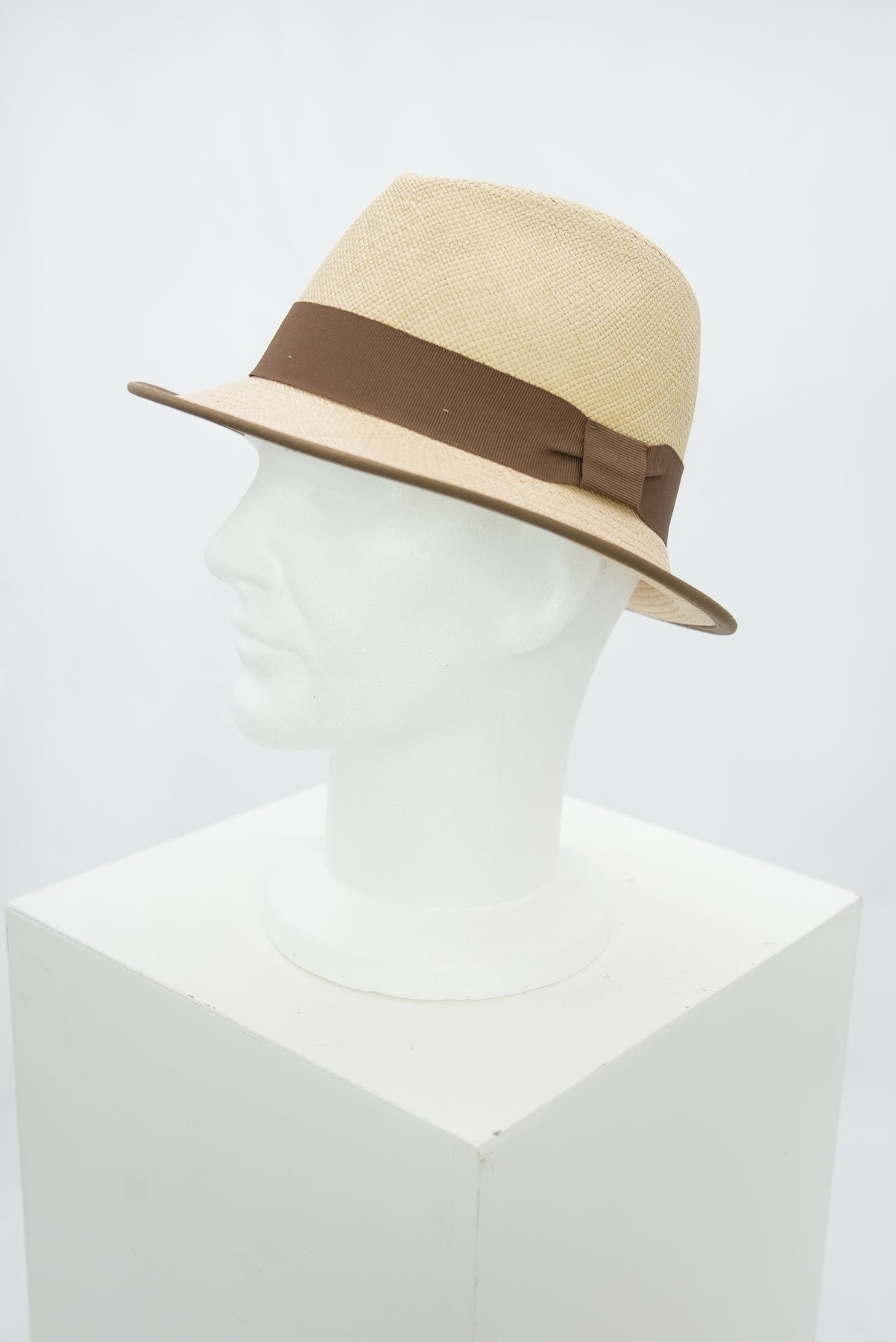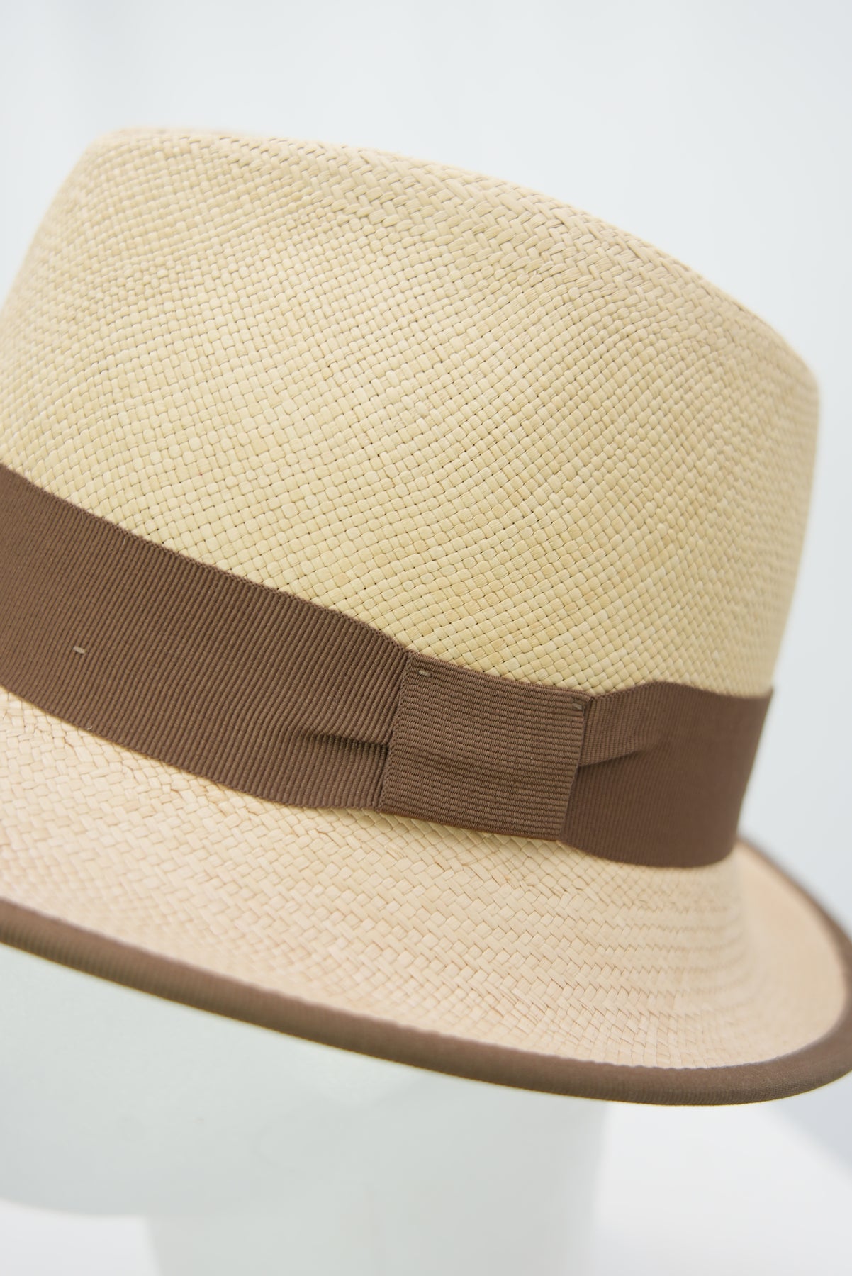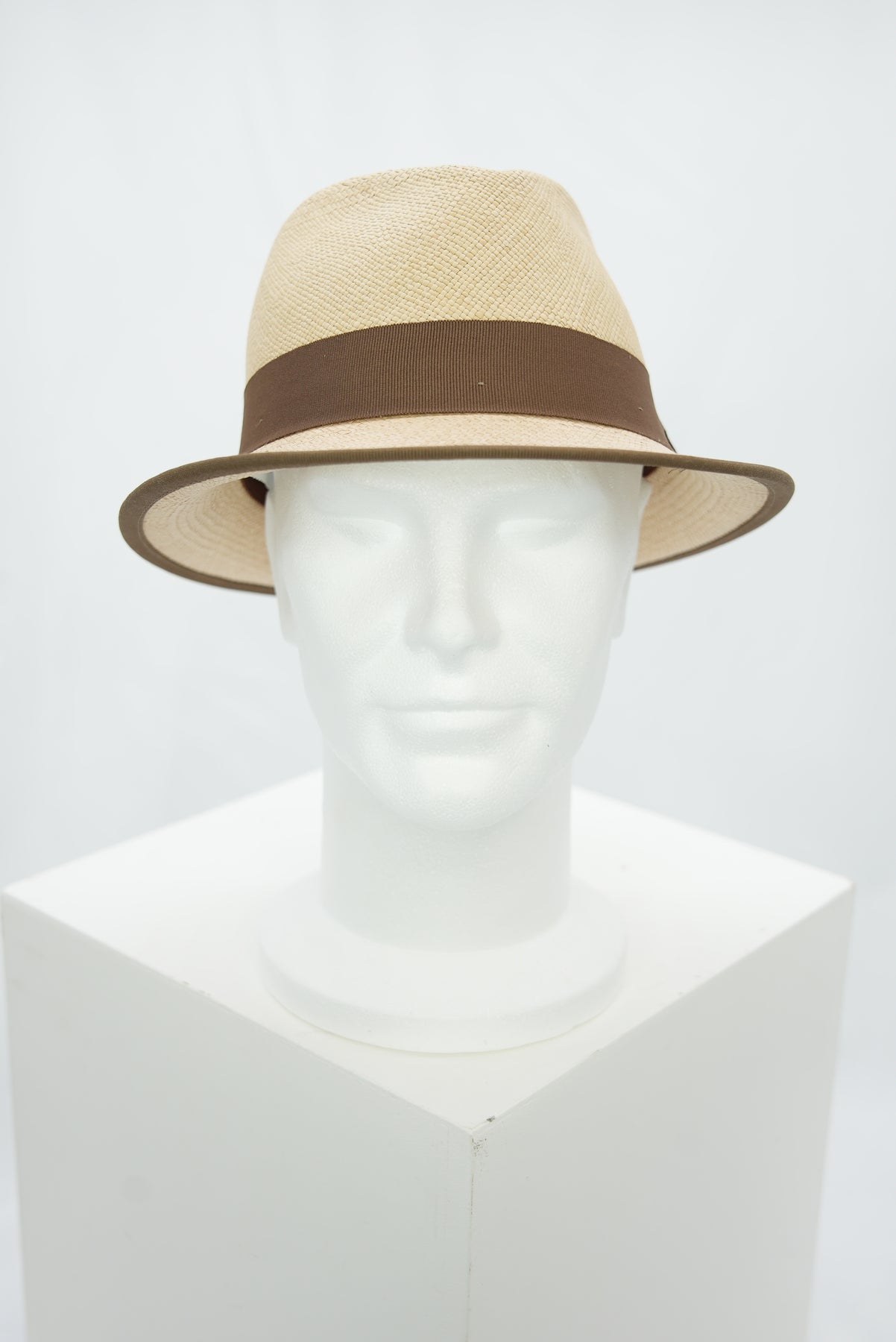 Schlichter Panamahut mit braunem Band und braunem Krempenrand
