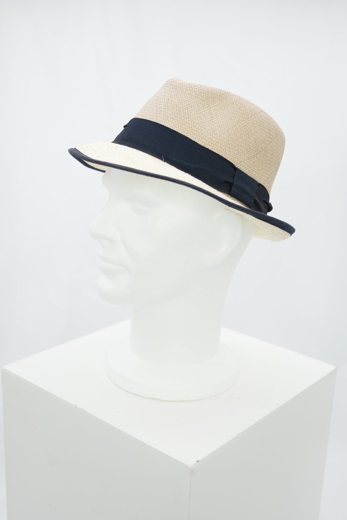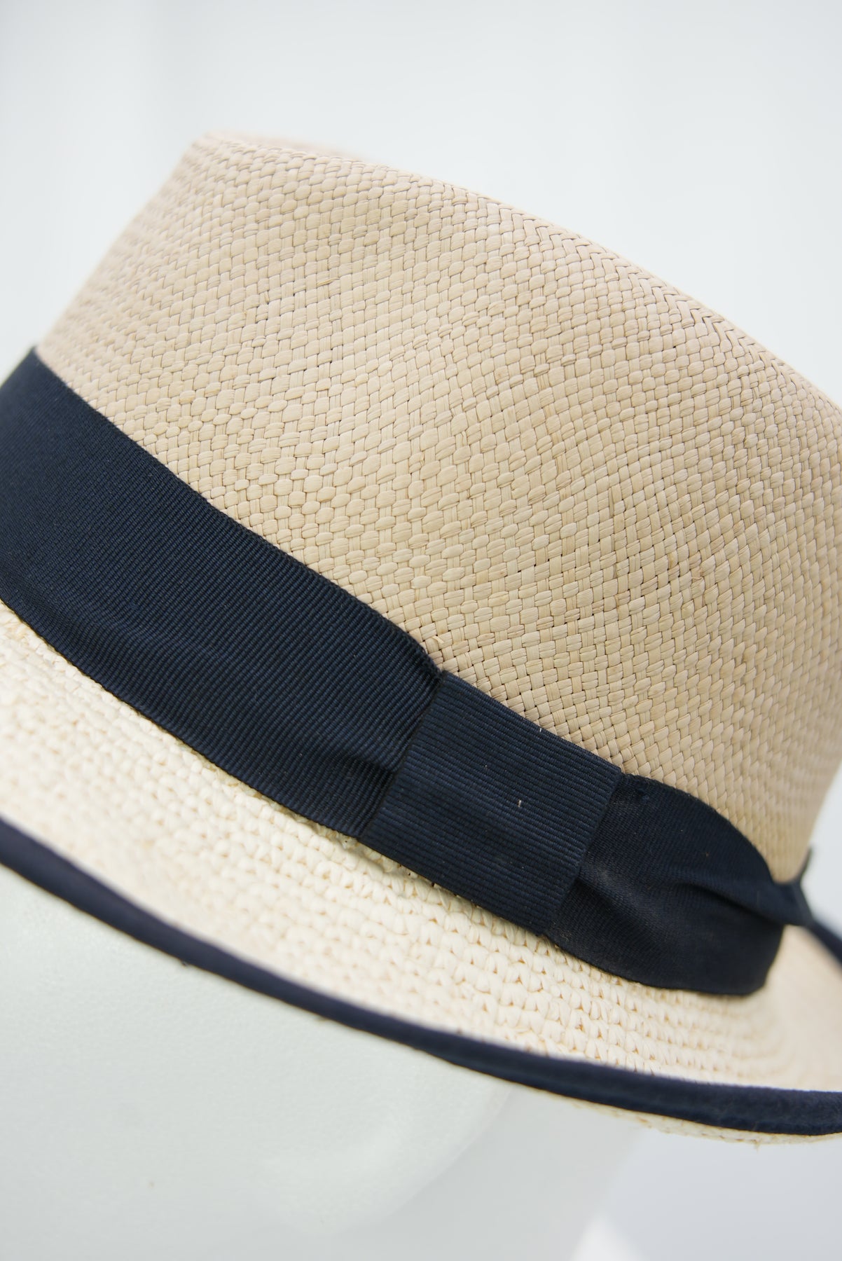 Panamahut mit dunkelblauem Band und Krempenrand