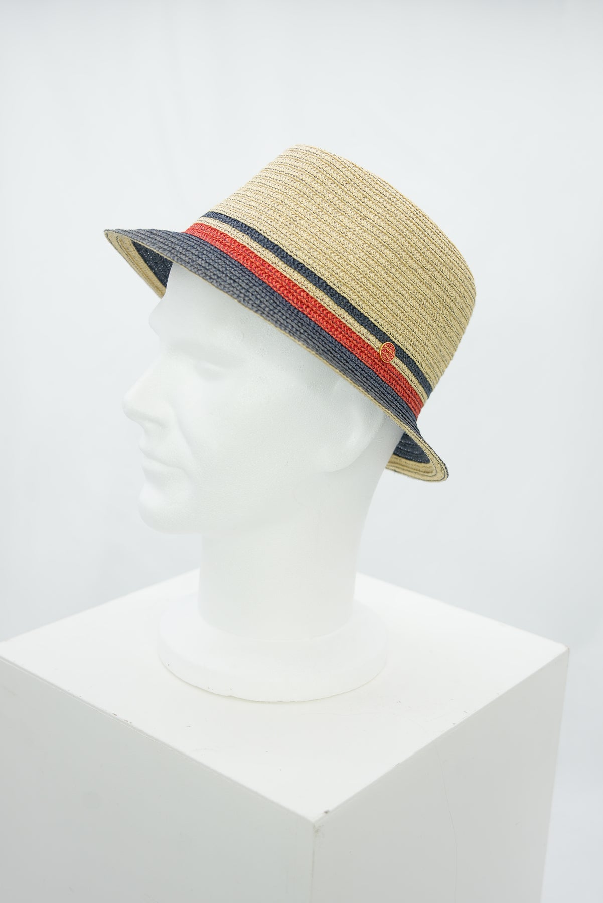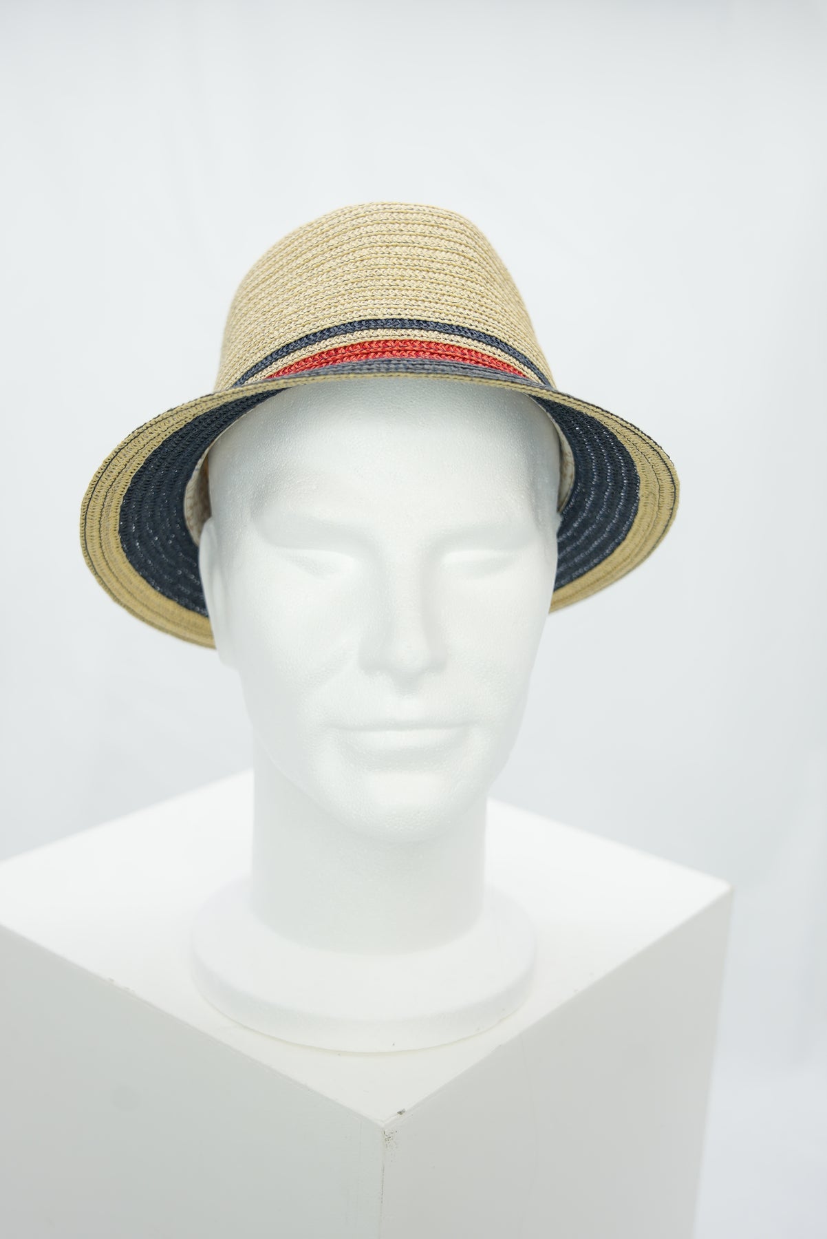 Strohhut für Herren mit dunkelblauer Krempe und rotem Akzent