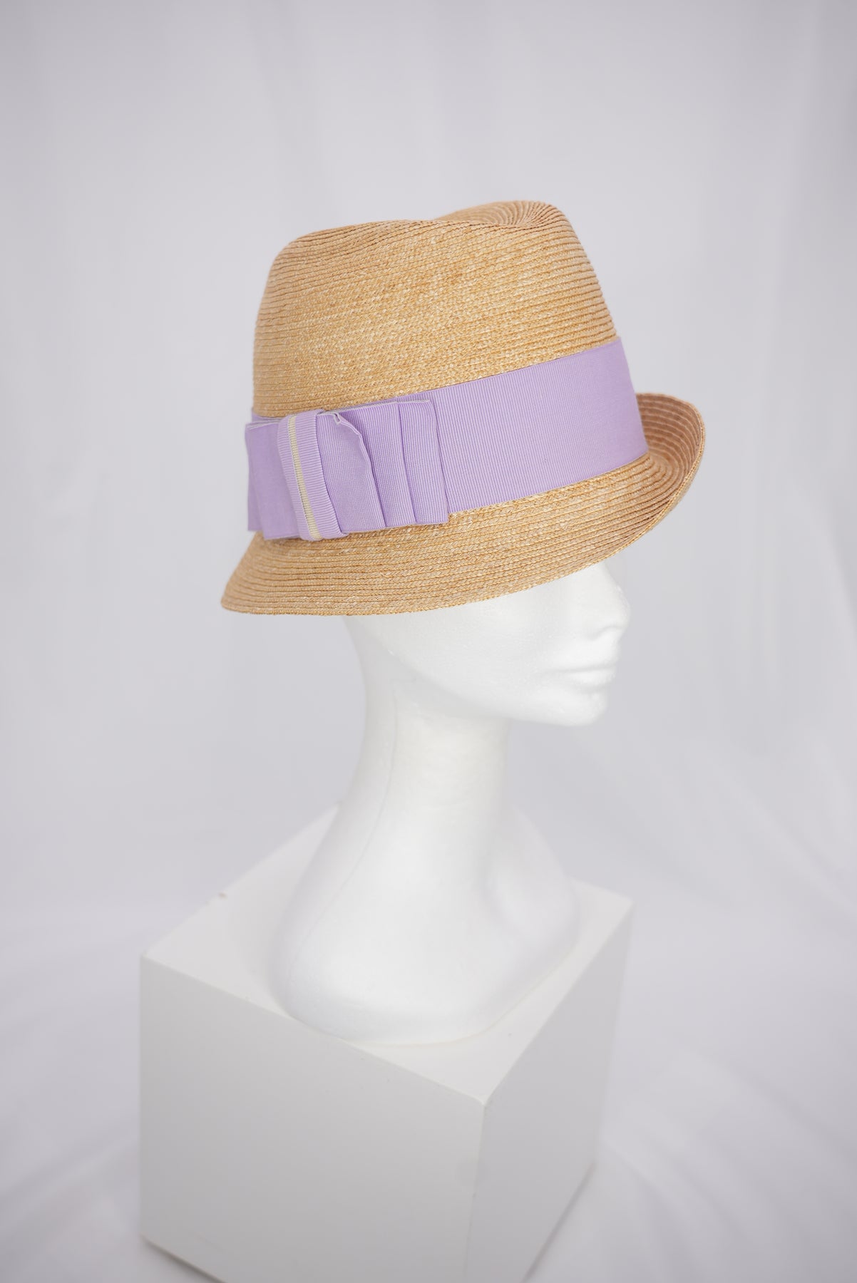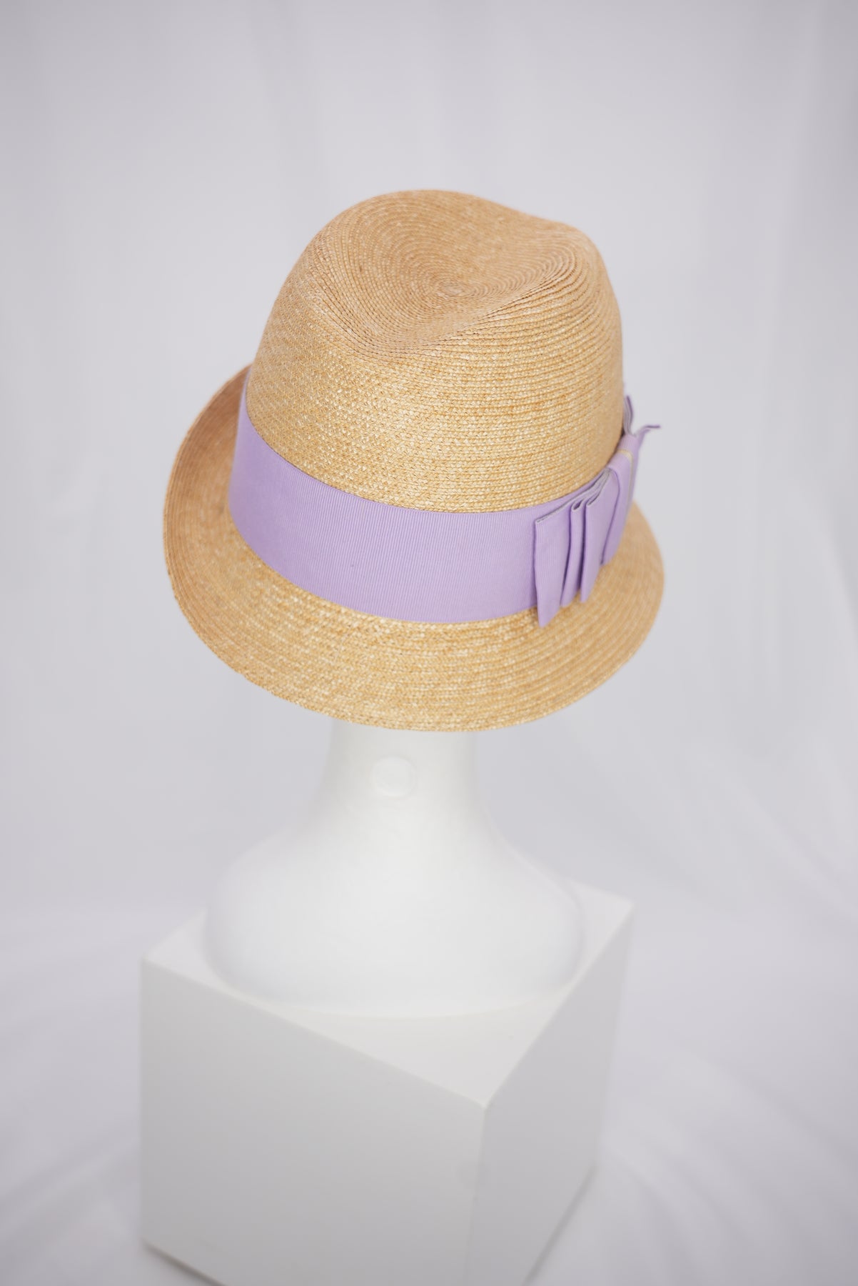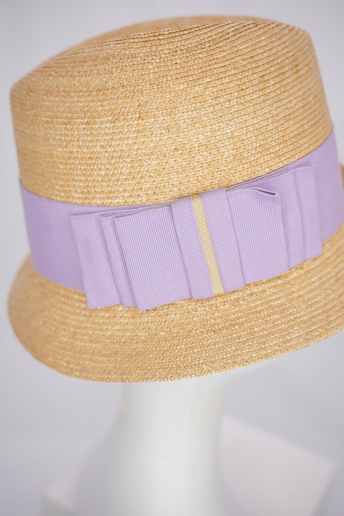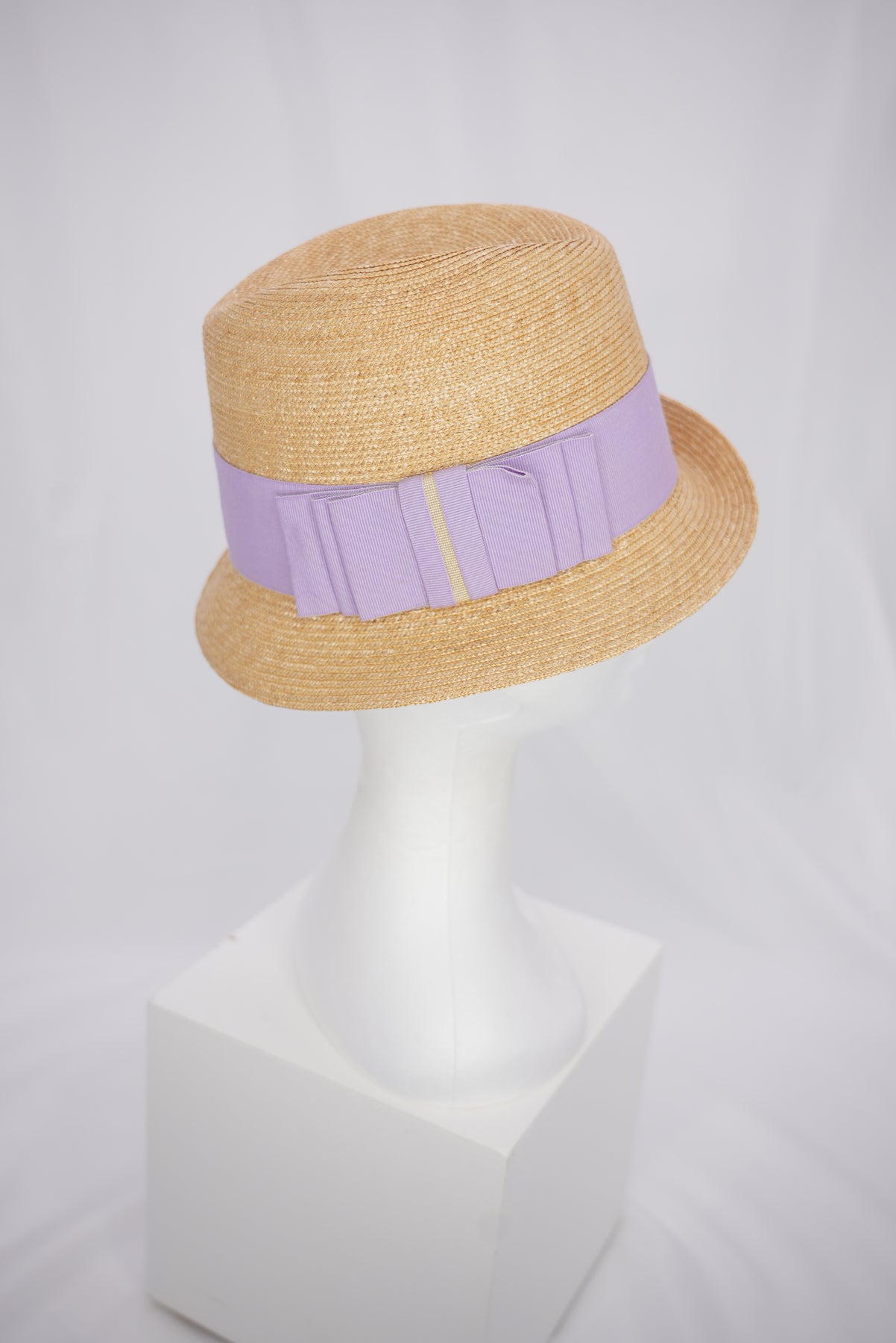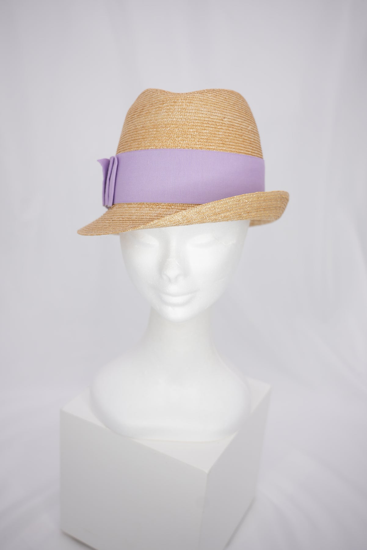 Dieser Damenstrohhut mit kleiner Krempe besticht durch seine schlichte Eleganz und feminine Ausstrahlung. Die kompakte Krempe verleiht dem Hut eine moderne, leichte Silhouette und macht ihn zum idealen Begleiter für sonnige Tage. Um die Krone liegt ein edles Ripsband in Lila, das einen stilvollen Farbakzent setzt und dem Design eine besondere Note verleiht. Ein zeitloses Accessoire, das sich vielseitig kombinieren lässt und jedem Outfit das gewisse Etwas schenkt.