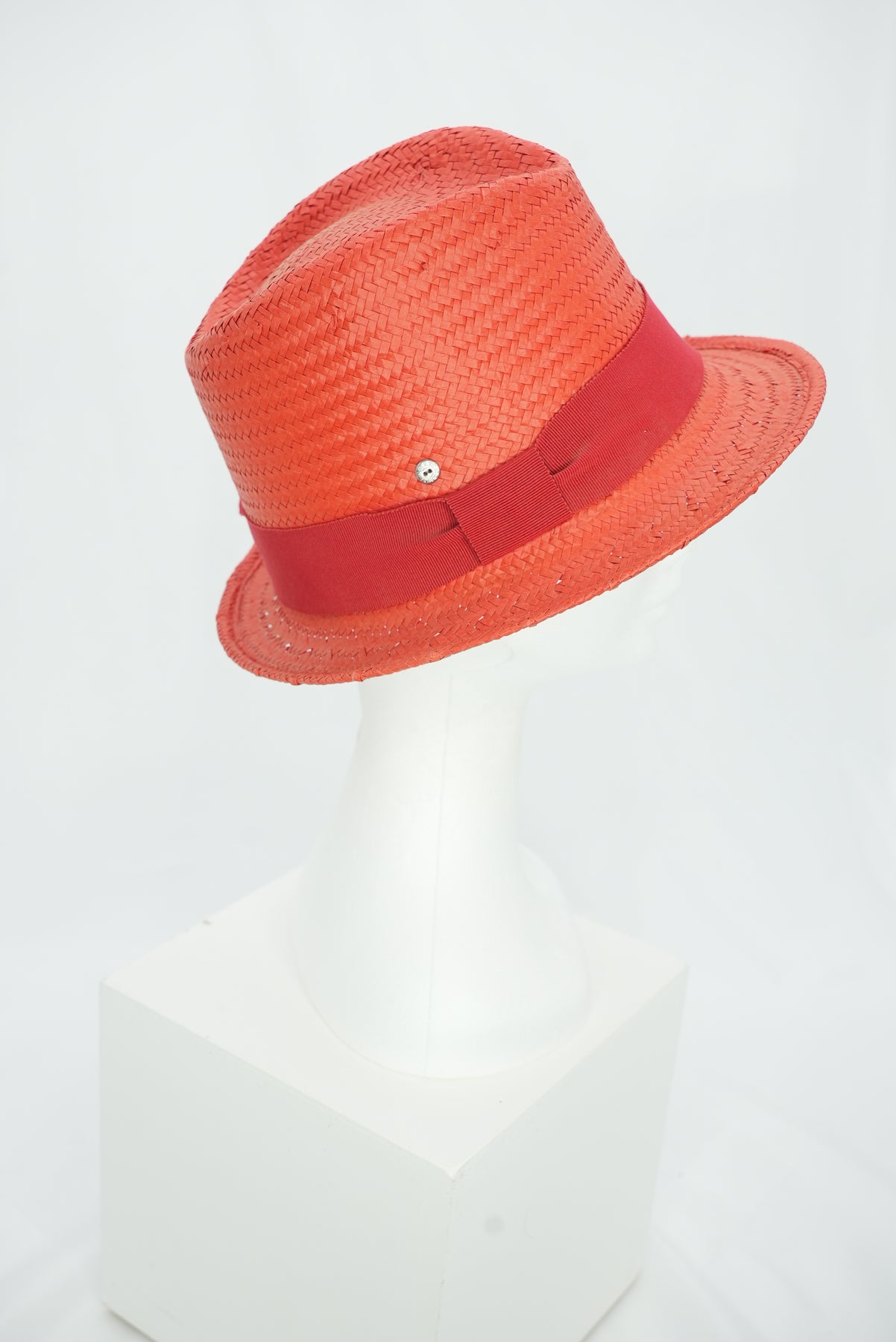Das rote Band rund um den Hut unterstreicht die Farbe harmonisch und sorgt für einen eleganten, stimmigen Abschluss. Das leichte Material sorgt für angenehmen Tragekomfort und macht den Hut zugleich robust und sommerlich leicht.
